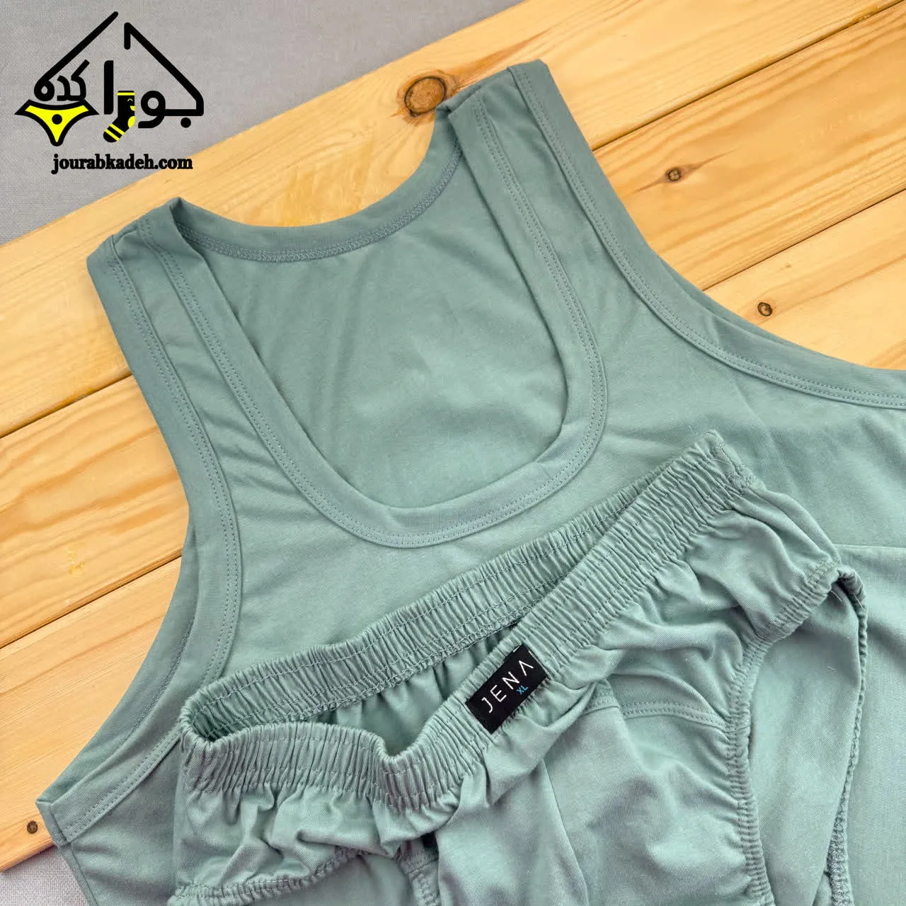 ست رکابی و شورت اسلیپ مردانه CLASSIC FIT پنبه سوپر جناب رنگ صابونی