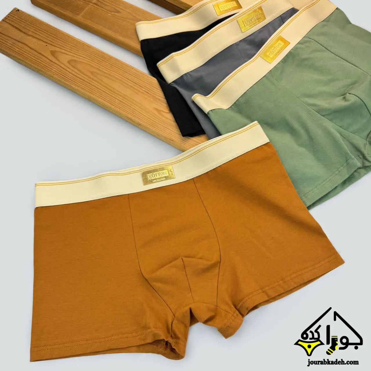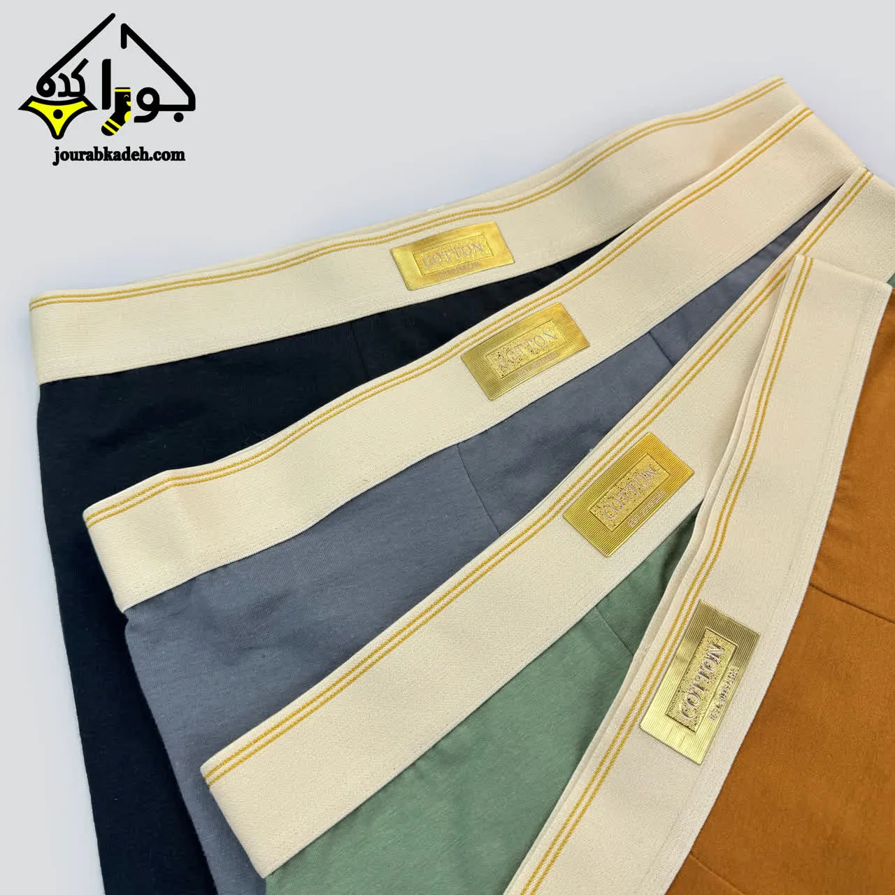 شورت نیمپا پنبه ای طرح COTTON طلایی برند لاکچری
